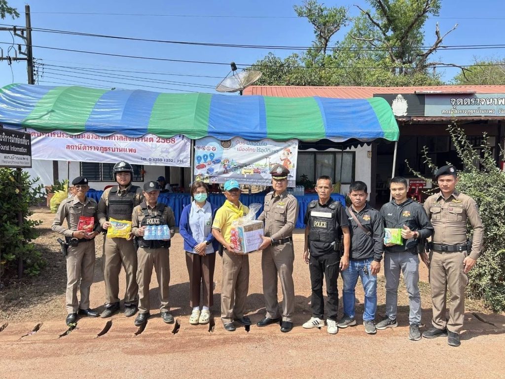 สภ.บ้านแพง ภ.จว.นครพนม พ.ต.อ.จีรุฏฐ์ พิมพา ผกก.สภ.บ้านแพง พร้อมด้วยร้อยเวร 20 สายตรวจรถยนต์ ได้ออกตรวจจุดบริการประชาชนช่วงเทศกาลสงกรานต์ปี 2568 ในพื้นที่ดังนี้