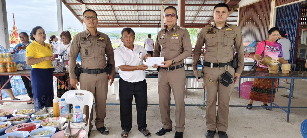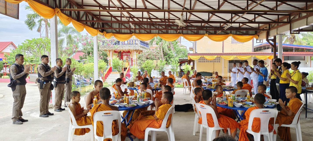 พ.ต.อ.จีรุฏฐ์ พิมพา ผกก.สภ.บ้านแพง พร้อมด้วยร้อยเวร 20 สายตรวจ ร่วมกับเจ้าหน้าที่ทหารเรือ สน.เรือบ้านแพง ราษฎร หมู่ที่ 7 , 8 ตำบลโพนทอง อำเภอบ้านแพง จังนครพนม เป็นเจ้าภาพถวายภัตตาหารเพล น้ำปานะ สามเณรที่บรรพชาสามเณรภาคฤดูร้อนเฉลิมพระเกียรติ