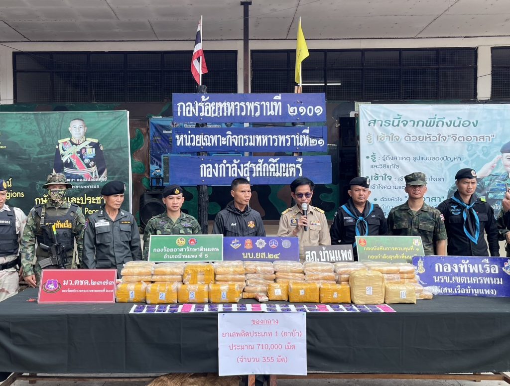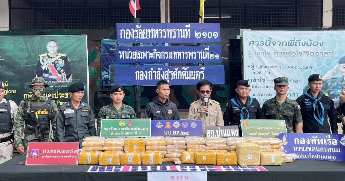 วันนี้ 4 พฤษภาคม 2568 เวลาประมาณ 10:30 น. พ.ต.ท.อดิศักดิ์ งามชัด รอง ผกก.สส.สภ.บ้านแพง ร่วมแถลงข่าวตรวจยึดยาบ้า จำนวน 355 มัด ประมาณ 710,000 เม็ด ที่กองร้อยทหารพราน ที่ 2101 บ.ปากห้วยม่วง ต.นาเข อ.บ้านแพง จ.นครพนม🔴โดยมีนายราชวัชร์ เพ็ชรไพรฑูรย์ นายอำเภอบ้านแพง เป็นประธานในการแถลงข่าว📌สถานที่ตรวจยึด บ้านปากห้วยม่วง ม.2 ต.นาเข อ.บ้านแพง จ.นครพนม