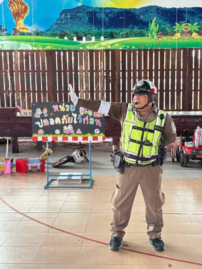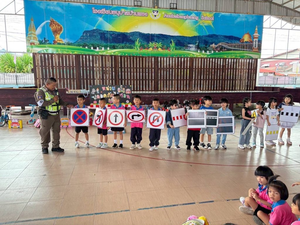 เป็นวิทยากรบรรยายให้ความรู้ความเข้าใจเกี่ยวกับการจราจร กฎจราจรเบื้องต้น ความปลอดภัยบนท้องถนน แก่นักเรียนชั้นอนุบาลปีที่2,3 ณ โดมโรงเรียนอนุบาลบ้านแพง โรงเรียนอนุบาลบ้านแพง