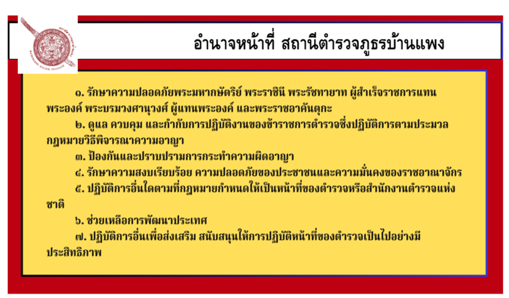 คำสั่งเกี่ยวกับการปฏิบัติ อำนาจหน้าที่ของตำแหน่งในสถานีตำรวจ